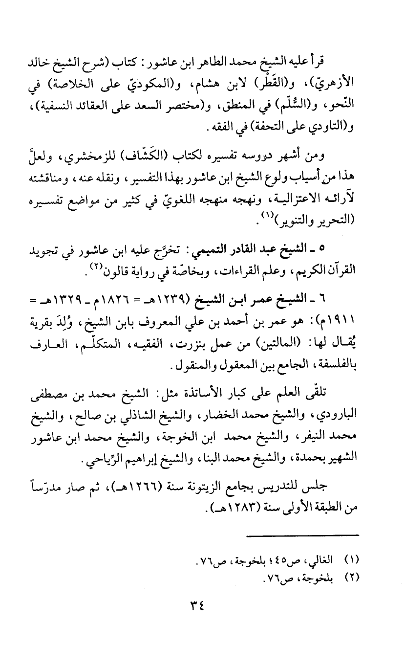 قرا عليه الشيخ محمد الطاهر ابن عاشور: كتاب (شرح الشيخ خالد