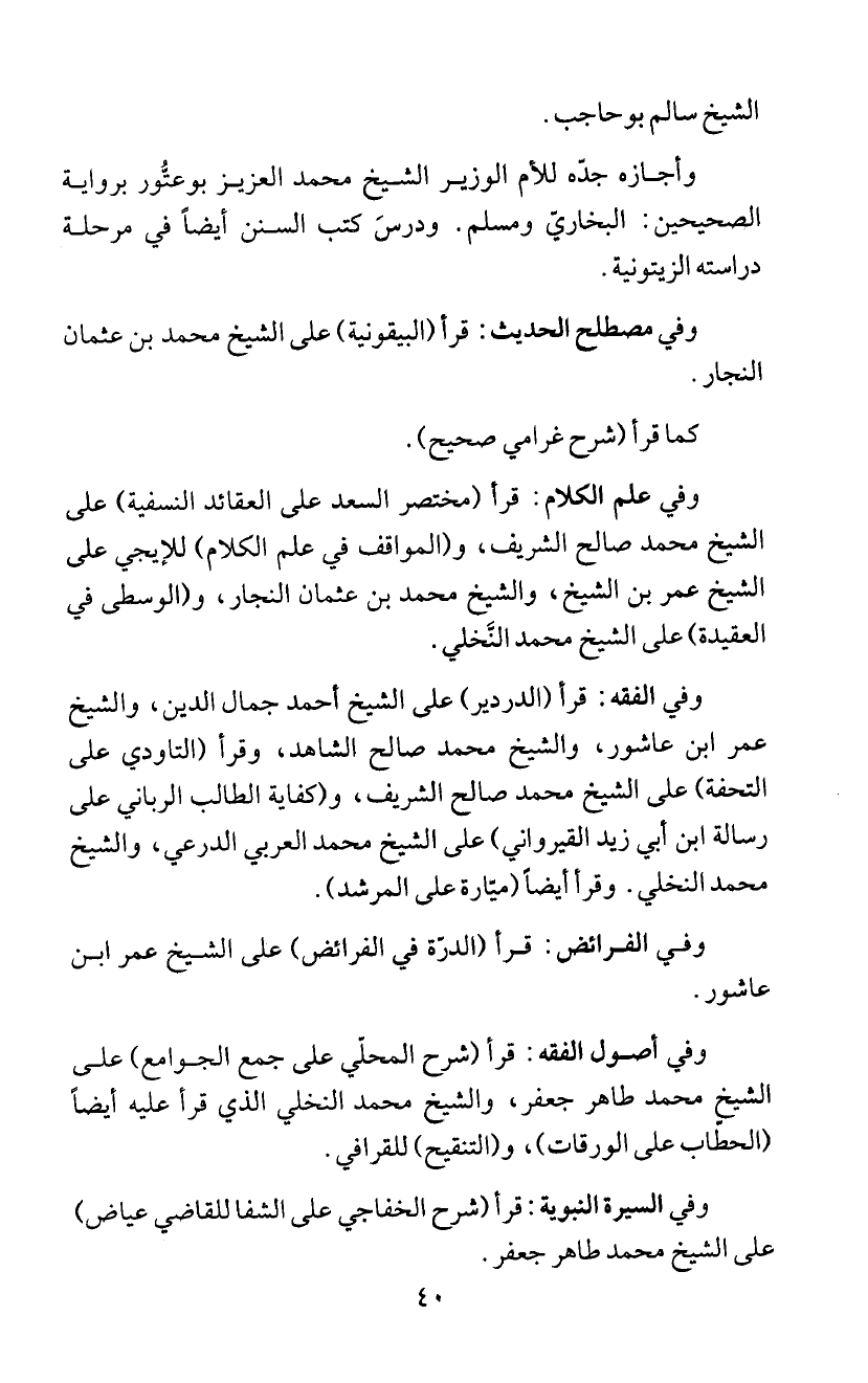 الشيخ محمد صالج الشريف، و (المواقف في علم الكلام) للإيجي على
