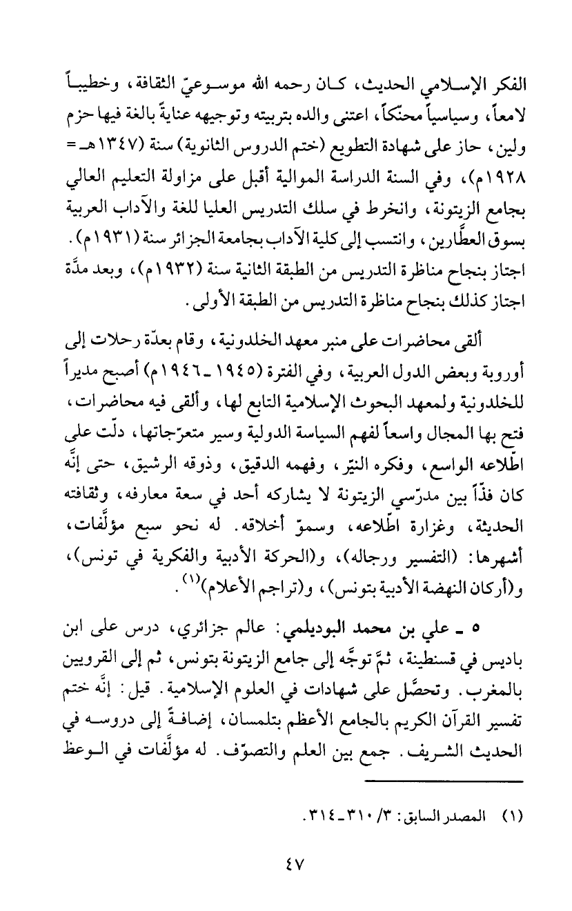 كان فذّاً بين مدزسي الزيتونة لا يشاركه أحد في سعة معارفه، وثقافته