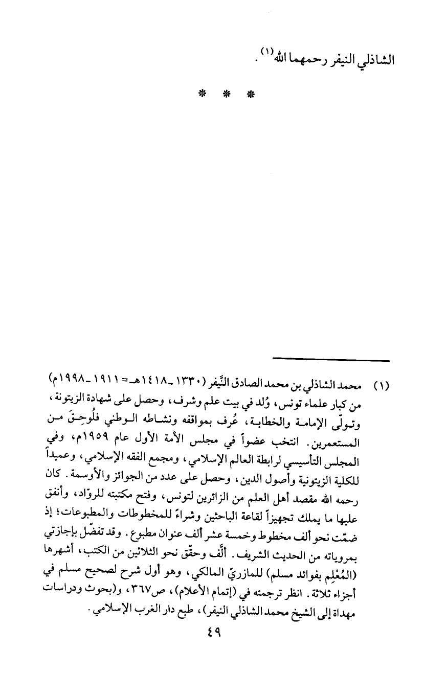 مهد إة إلى الشيخ محمد الشاذلي النيفر)، طبع دار الغرب الإسلامي.