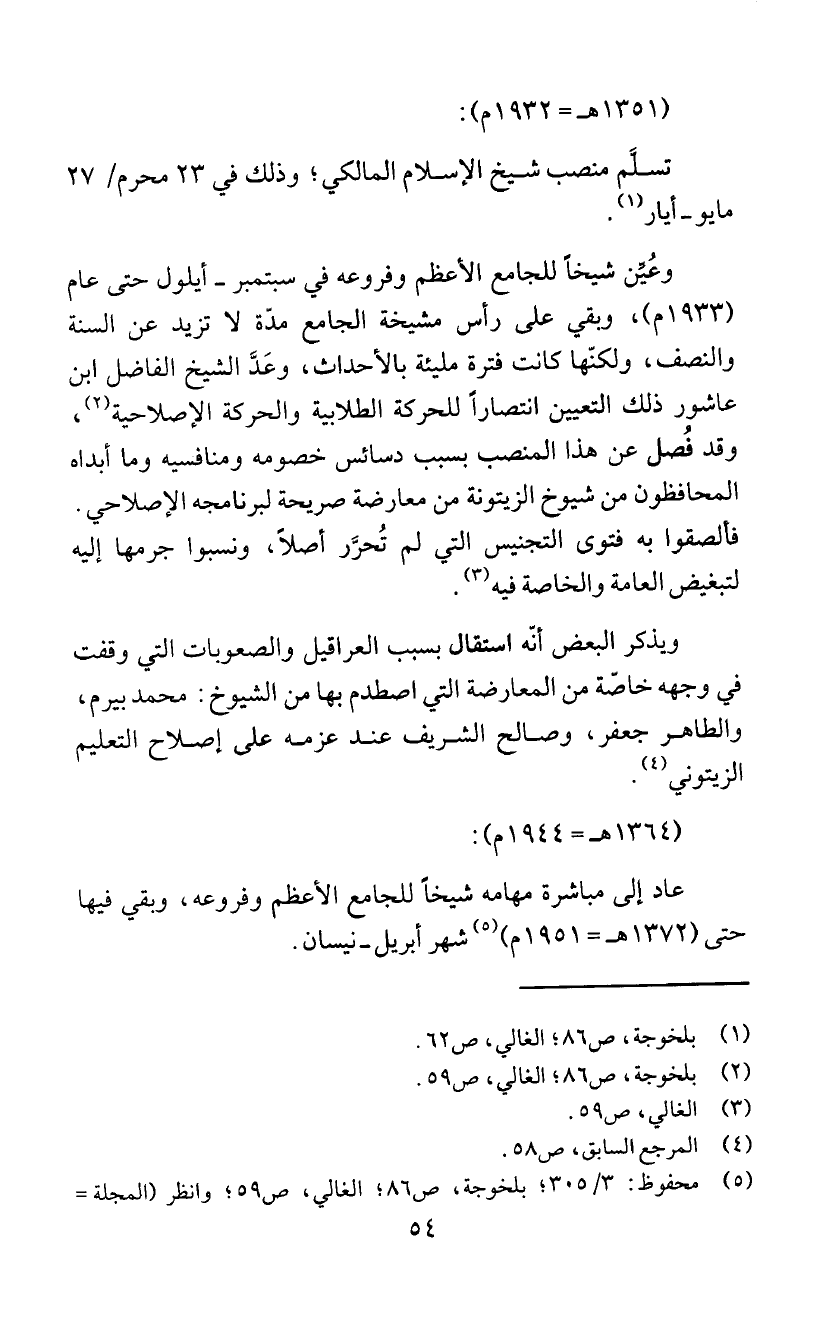 المحافظون من شيوخ الزيتونة من معارضة صريحة لبرنامجه الإصلاحي.
