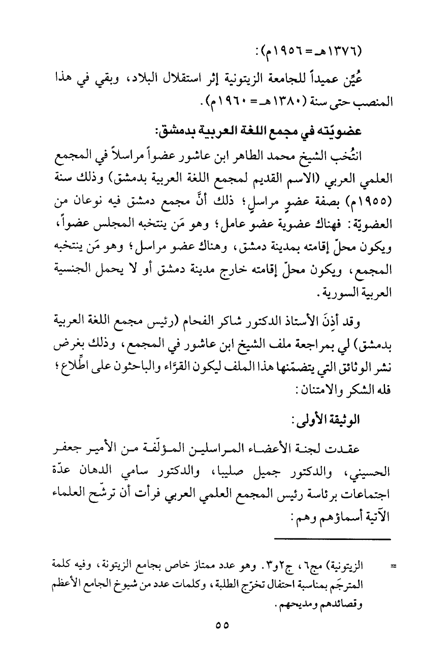 بدمشق) لي بمراجعة ملف الشيخ ابن عاشور في المجمع، وذلك بغرض