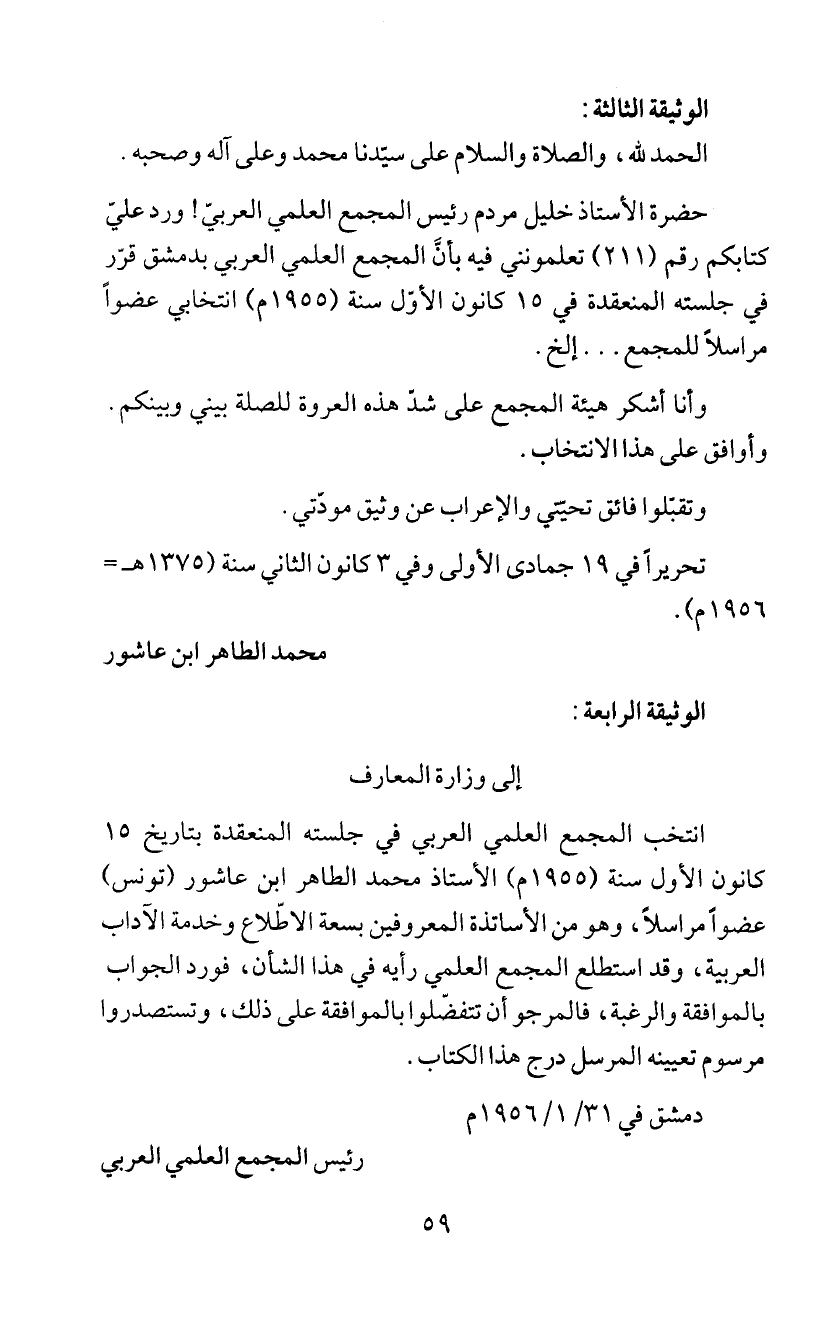 كتابكم رقم (1 21) تعلمونني فيه بانَ المجمع العلمي العربي بدمشق قرّر