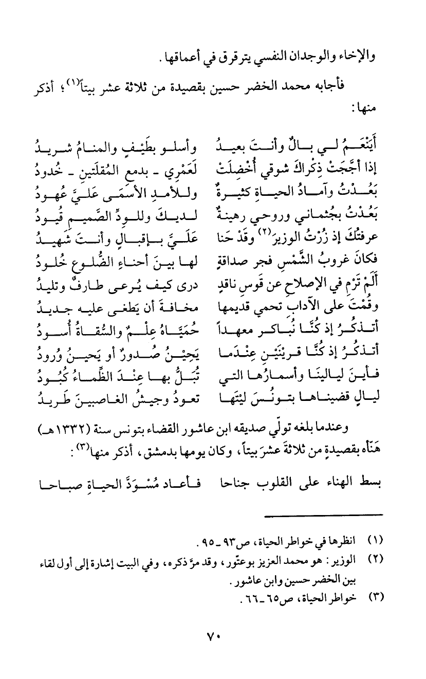 (1) انظرها في خواطر الحياة، ص 93 - ه 9.