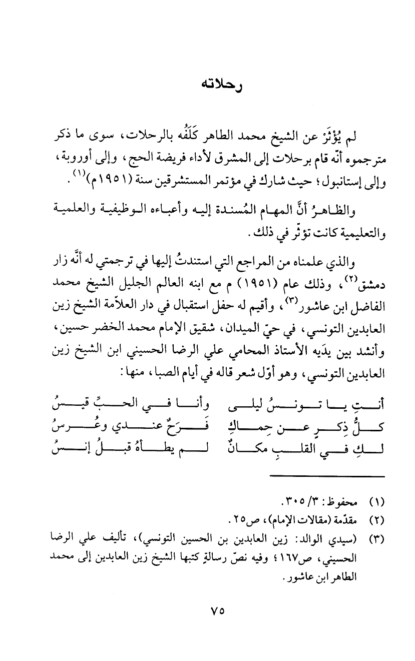 لم يُؤْثَرْ عن الشيخ محمد الطاهر كَلَفُه بالرحلات، سوى ما ذكر