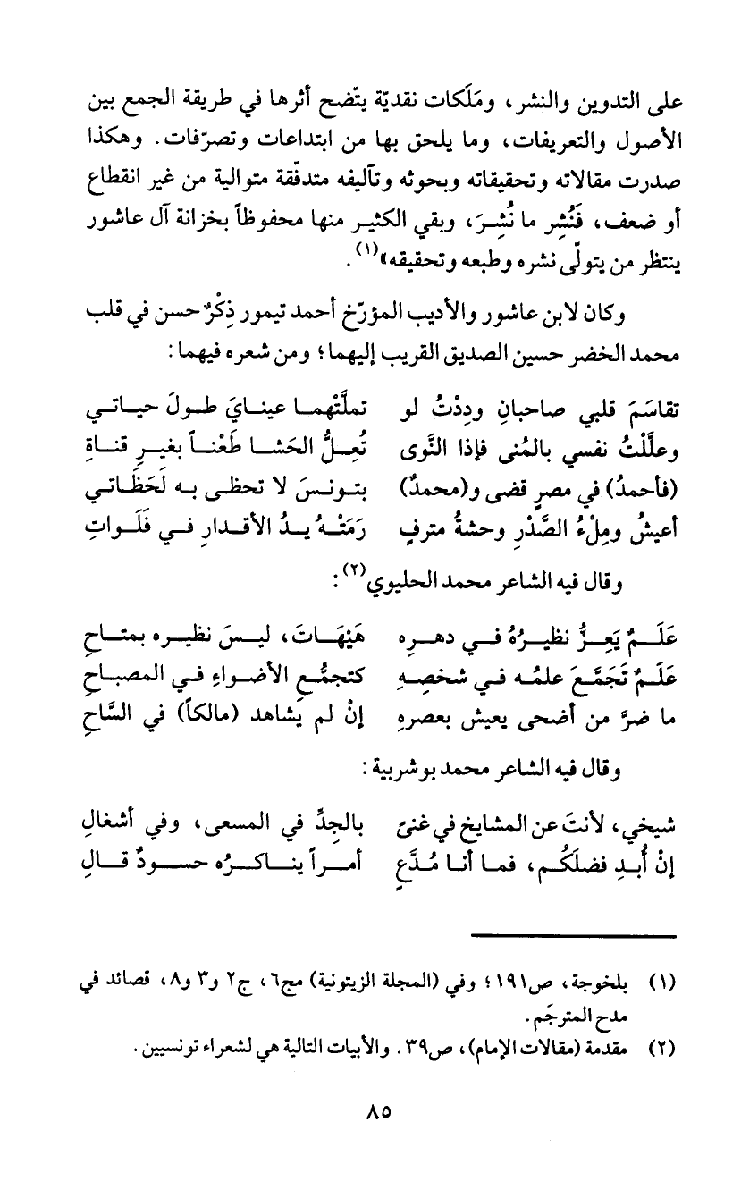 (2) مقدمة (مقالات الإمام)، ص 39. والأبيات التالية هي لشعراء تونسيين.