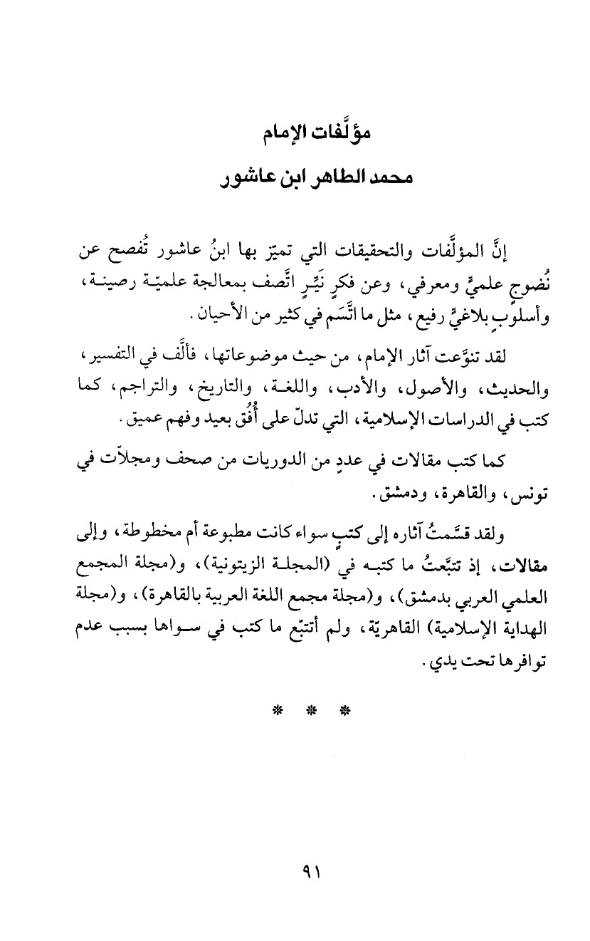 إن المؤثَفات والتحفيقات التي تميّز بها ابنُ عاشور تُفصح عن