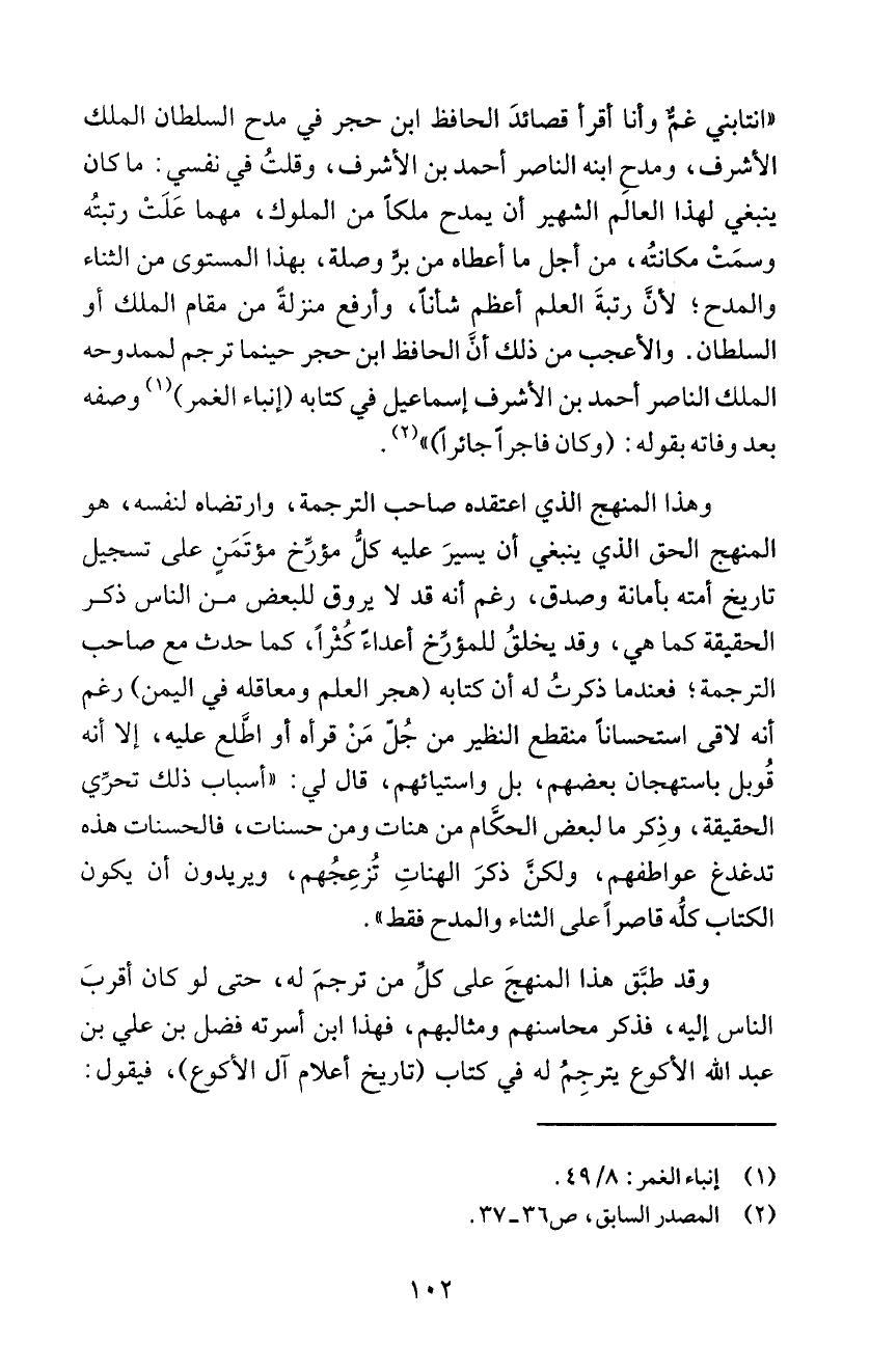 السلطان. والأعجب من ذلك انَ الحافظ ابن حجر حينما ترجم لممدوحه