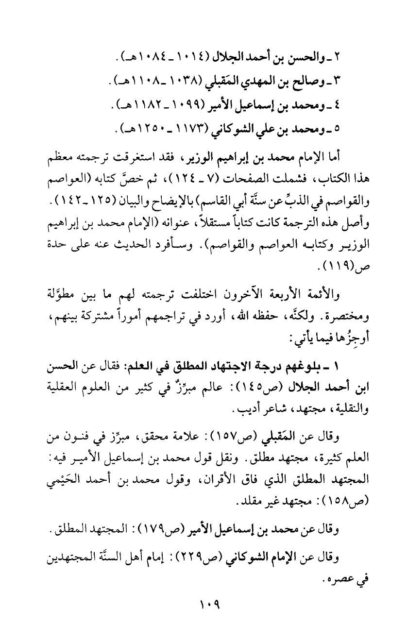 وقال عن محمد بن إسماعيل الأمير (ص 179): المجتهد المطلق.