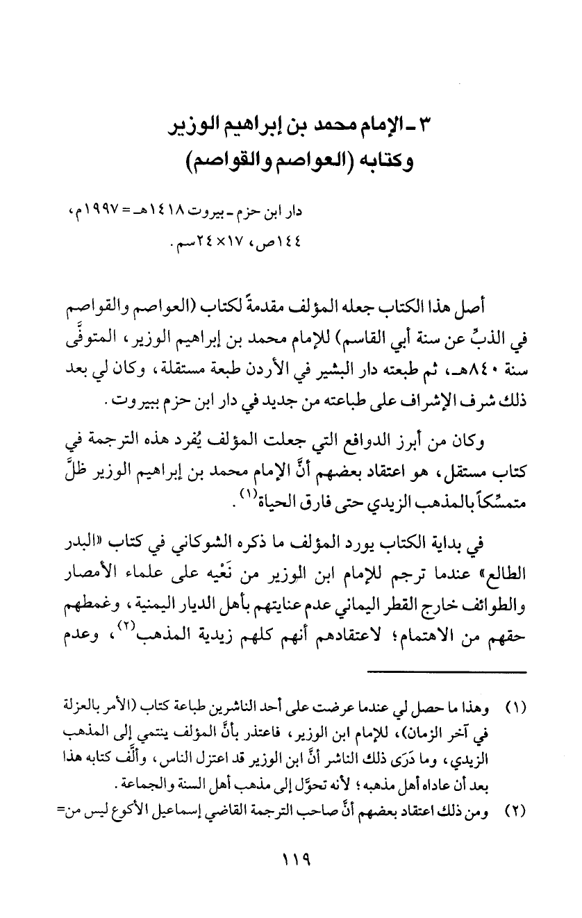 الزيدي، وما دَرَى ذلك الناشر ان ابن الوزير قد اعتزل الناس، والَّف كتابه هذا