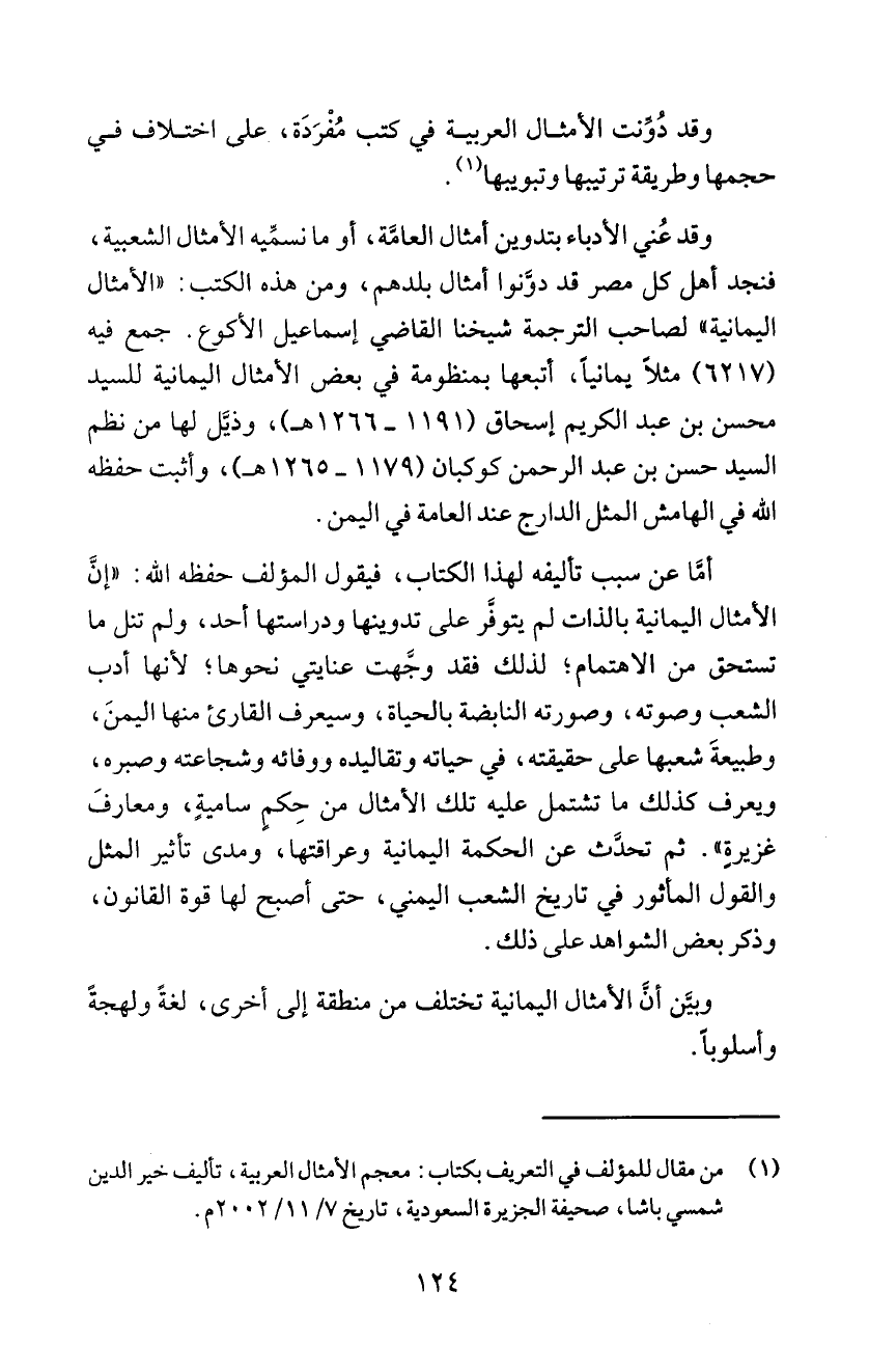 من مقال للمؤلف في التعريف بكتاب: معجم الأمثال العربيه، تأليف خير الدين