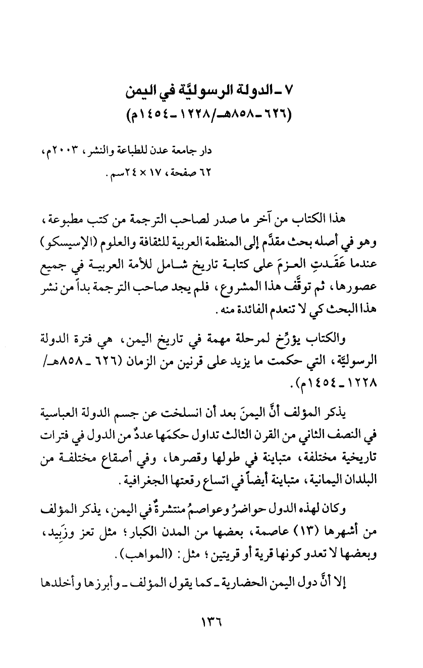 الرسولئة، التي حكمت ما يزيد على قرنين من الزمان (626 - 858 هـ/