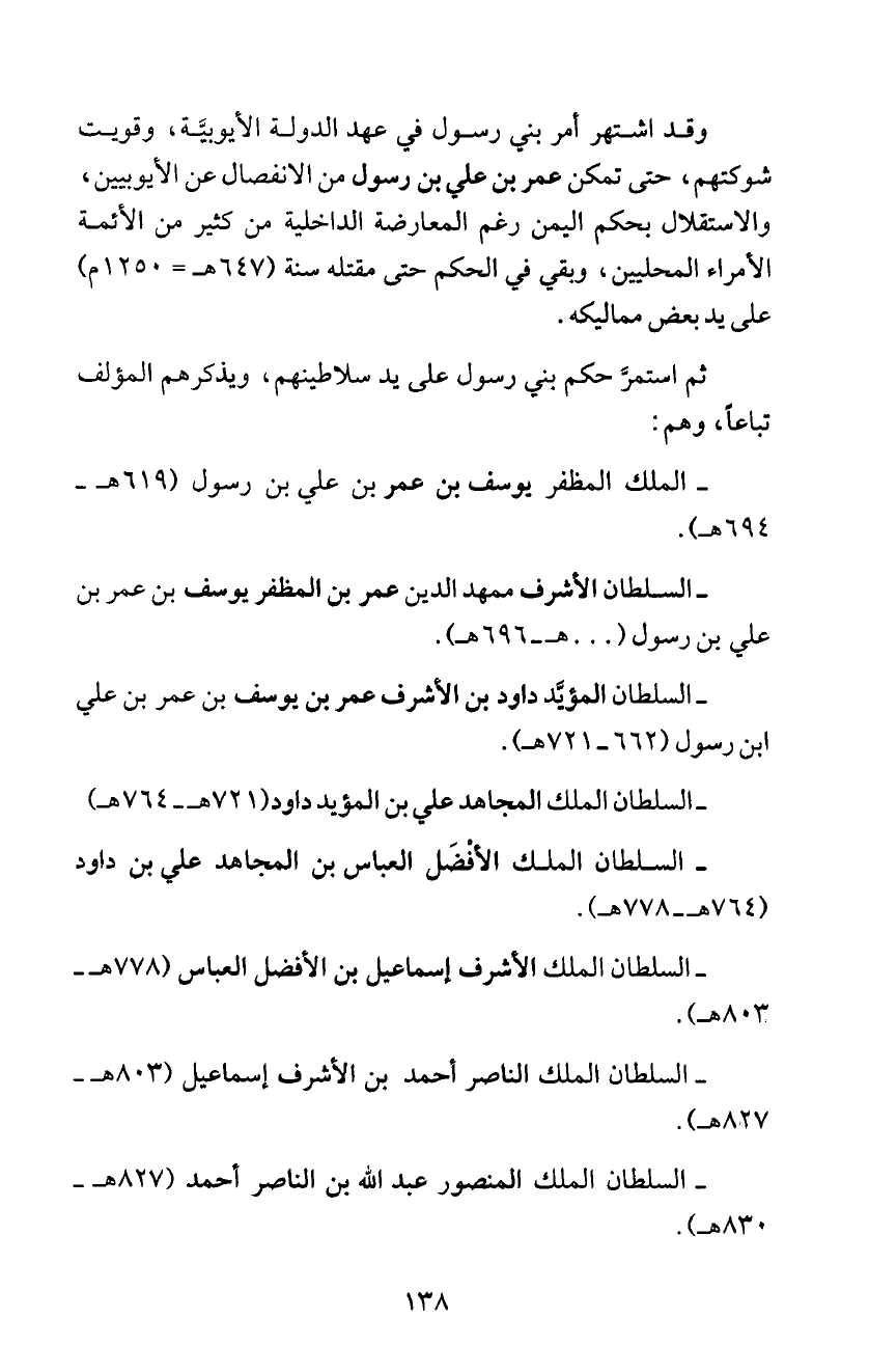 ثم استمرَ حكم بني رسول على يد سلاطينهم، ويذكرهم المؤلف