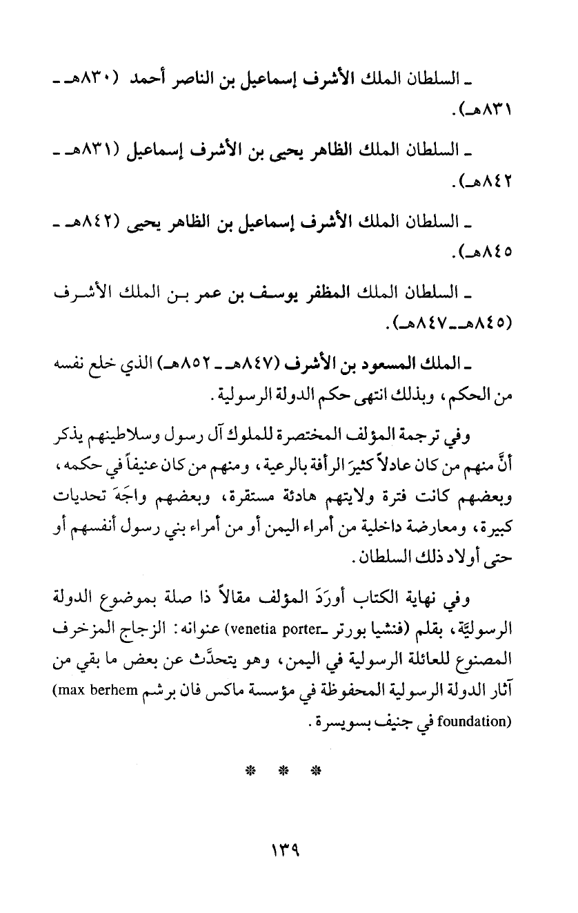 وفي ترجمة المؤلف المختصرة للملوك ال رسول وسلاطينهم يذكر