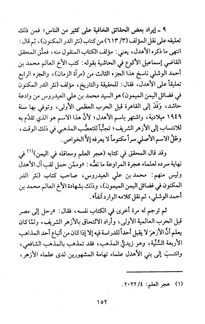 تعليقاَ على الأهدل، فقال: للحقيقة والتاريخ، مؤلف (نثر الدر المكنون