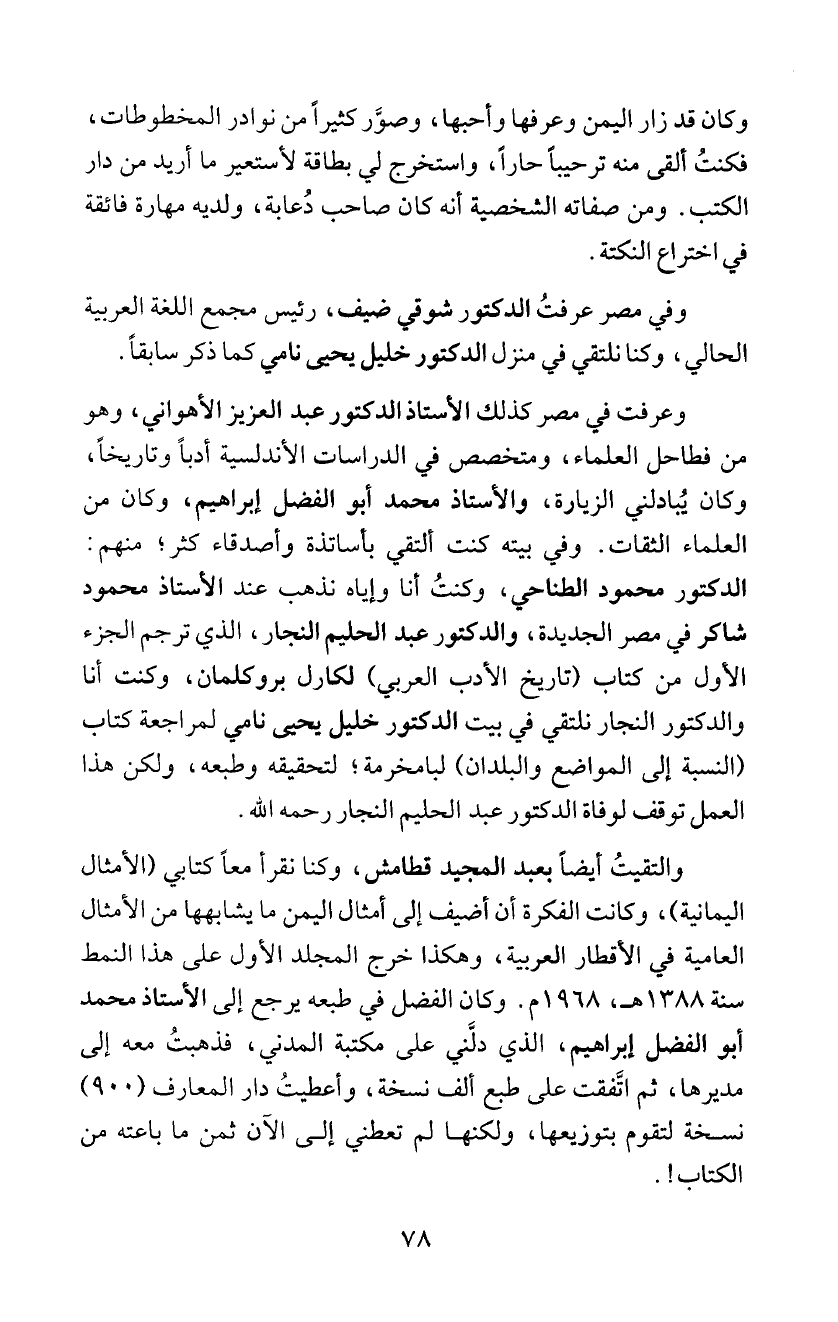 وفي مصر عرفتُ الدكتور شوقي ضيف، رئيس مجمع اللغة العربية