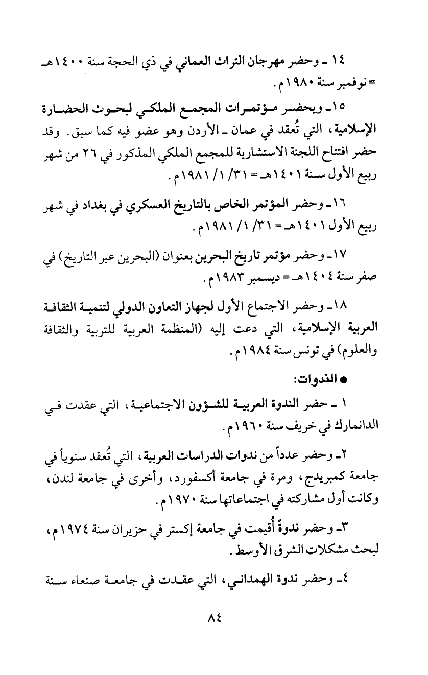 5 ا- ويحضر مؤتمرات المجمع الملكي لبحوث الحضارة