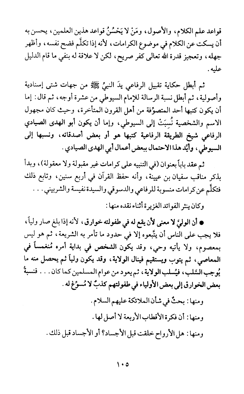 ثم عقد باباَ بعنوان (في التنبيه على كرامات غير مقبولة ولا معقولة)، وبدأ