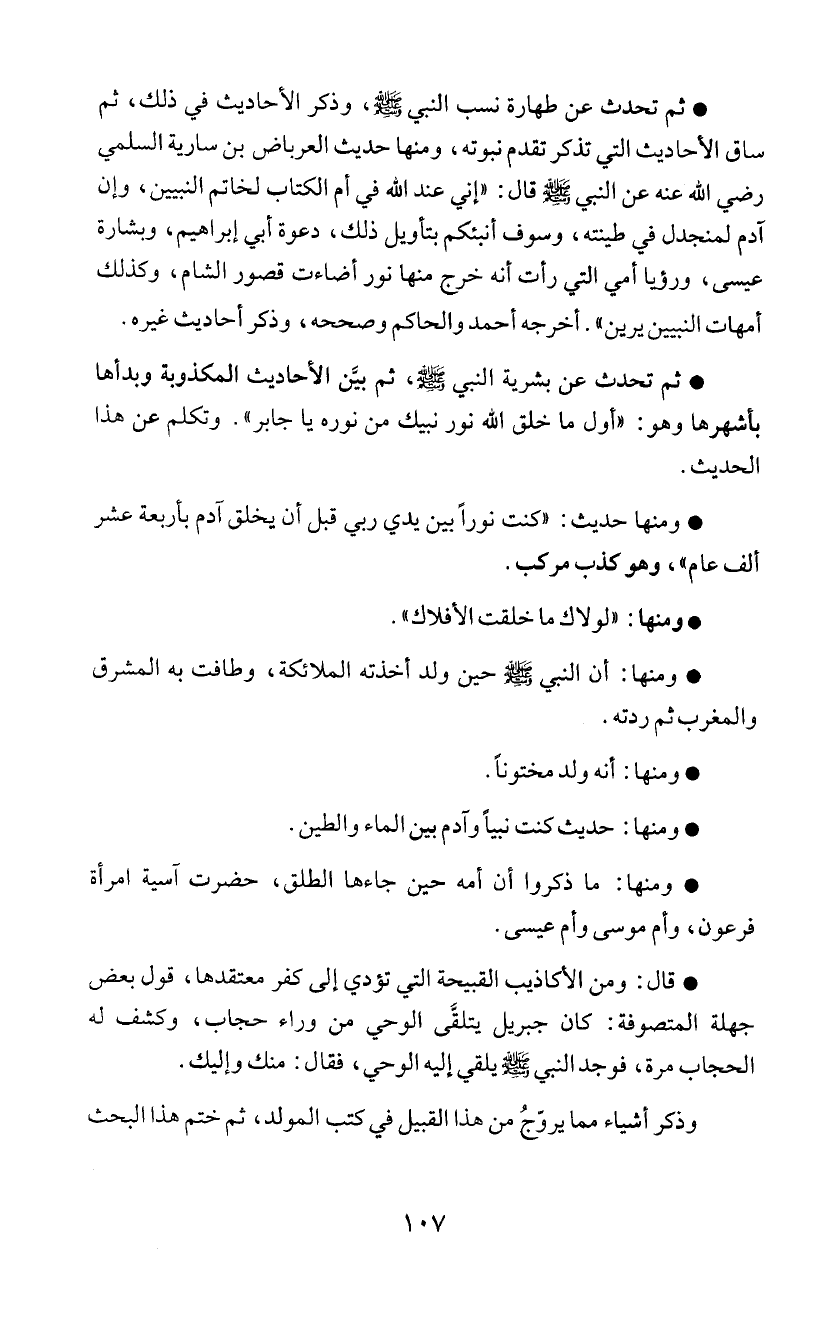 ثم تحدث عن بشرية النبي ع! يم، ثم بيق الأحاديث المكذوبة وبدأها