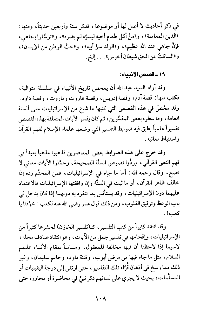 العامة، وما سطره بعض المف! رين، ثم كان يفسر الاَيات المتعلقة بهذه القصص