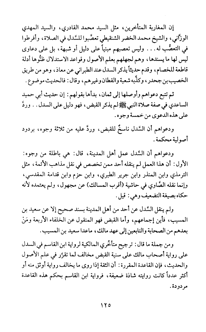 ومن جملة ما قال!: ترجيح متاًخري المالكية لروإية ابن القاسم في السدل