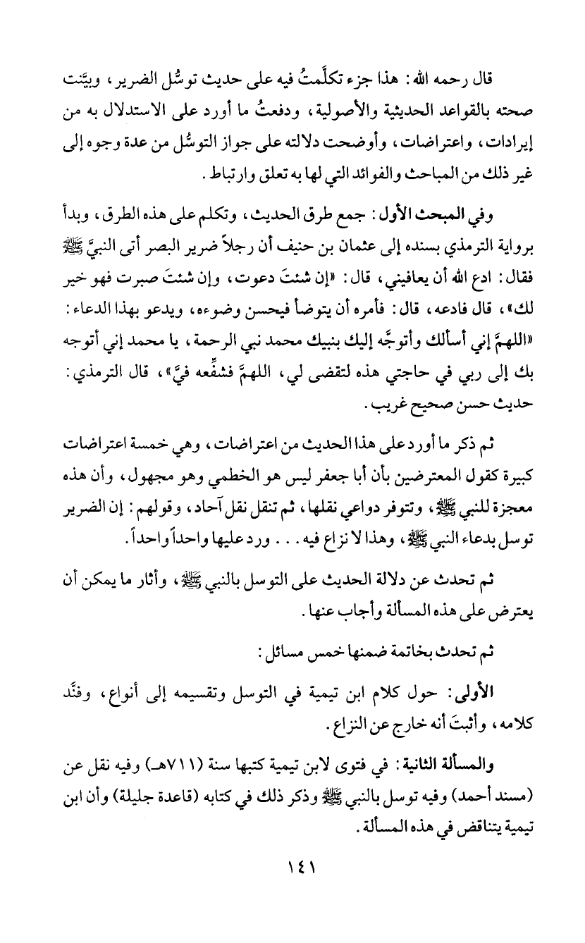 قال رحمه الله: هذا جزء تكفَمتُ فيه على حديث توشُل الضرير، وبئنت