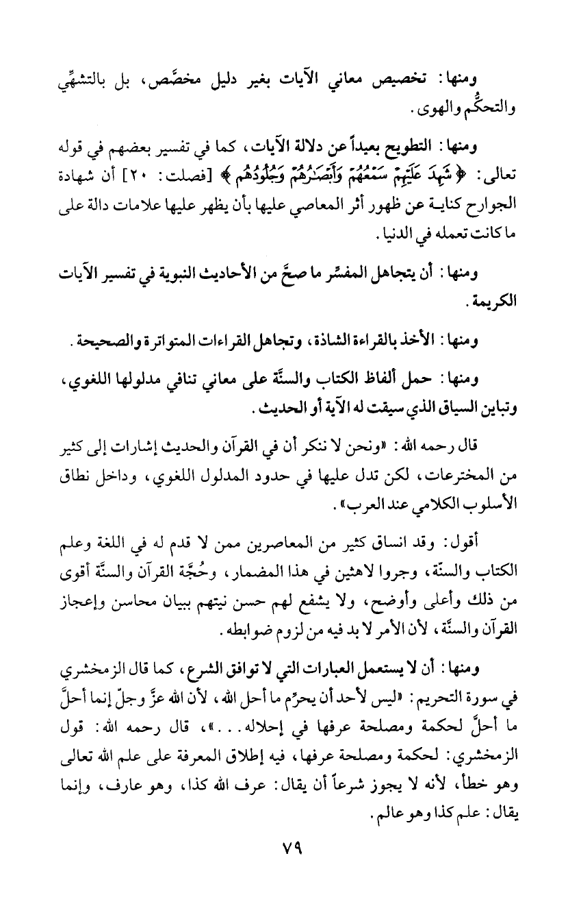 ومنها: أن لا بستعمل العبارات التي لا نوافق الشرع، كما قال الزمخشري