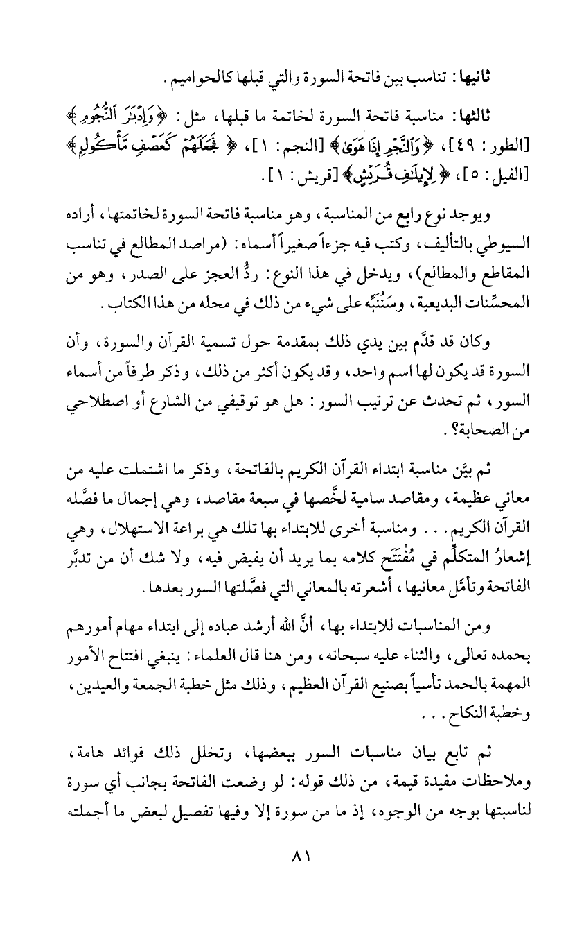 ويوجد نوع رابع من المناسبة، وهو مناسبة فا تحة السورة لخاتمتها، أراد 5
