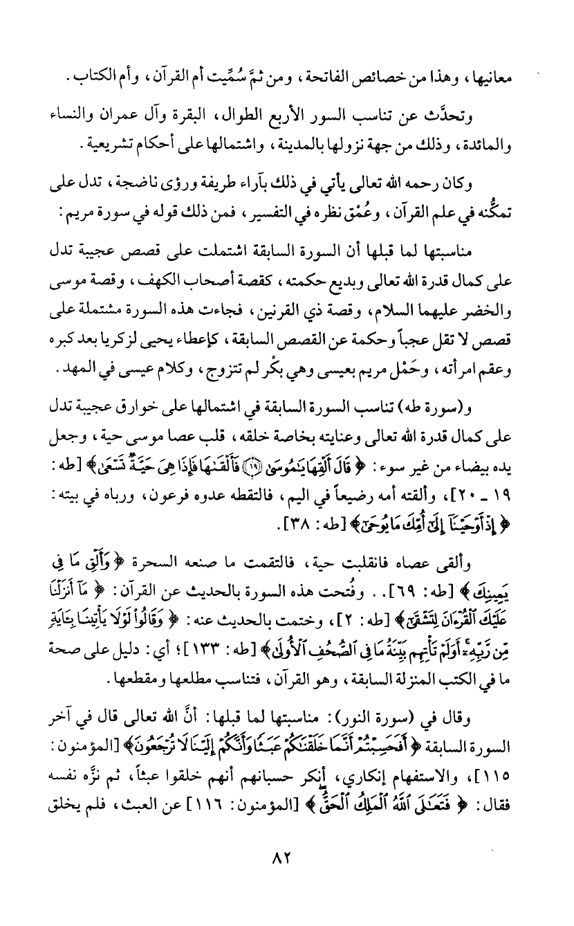 وتحدَث عن تناسب السور الأربع الطوال، البقرة واَل عمران والنساء