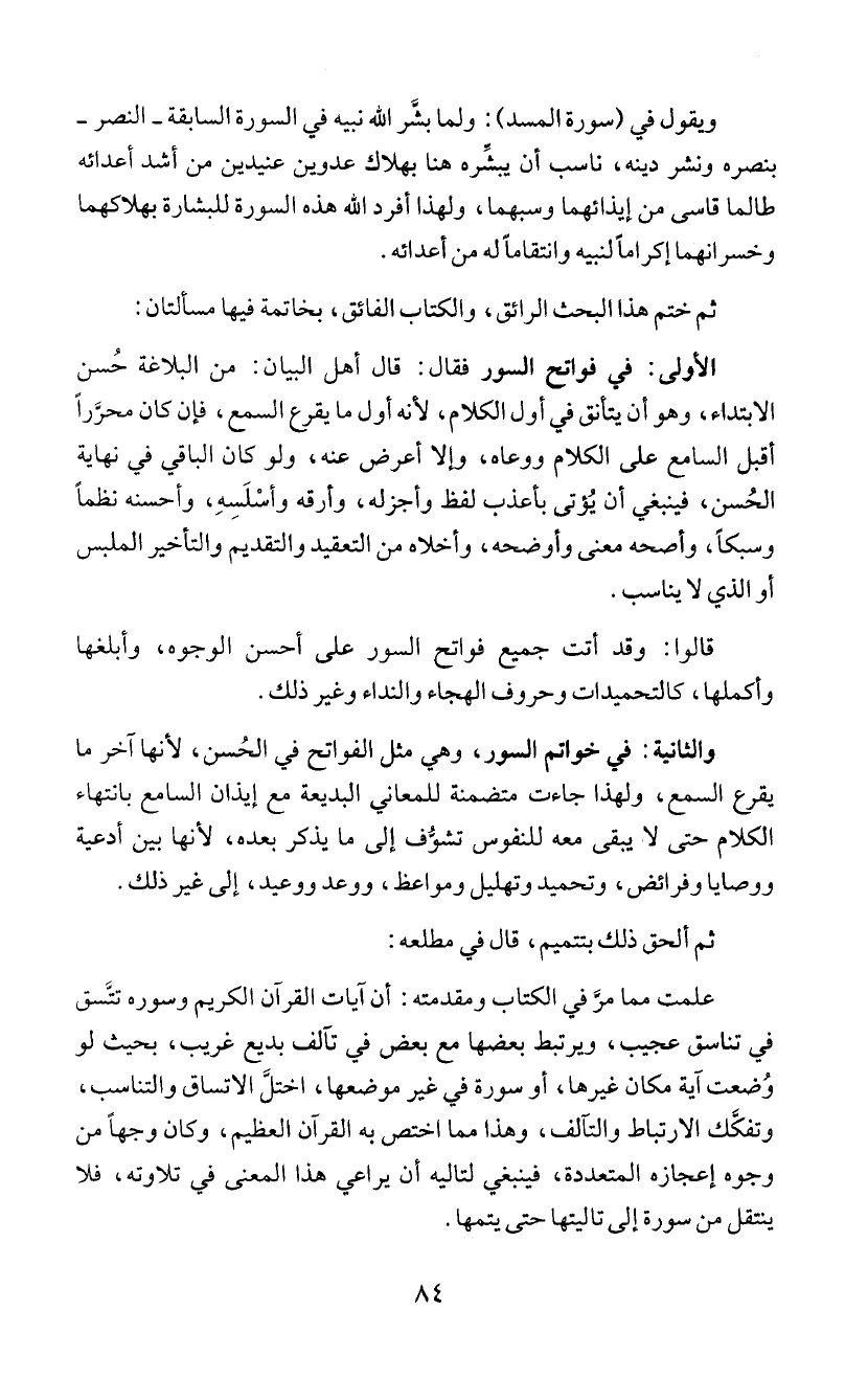 والثانية: في خواتم السور، وهي مثل الفواتح في الحُسن، لأنها آخر ما