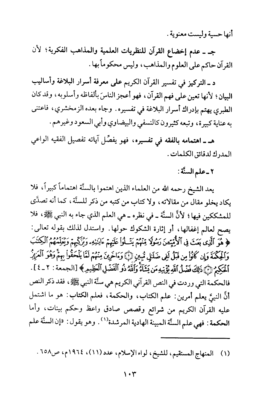 (1) المنهإج المستقيم، للشيخ، لواء الإسلام، عدد (1 1)، 4 96 1 م، ص 658.