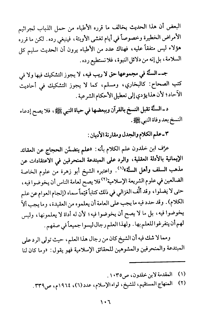 مذهب السلف واهل السنَهَ" (1). واعتبره الشيخ أبو زهرة من علوم الخاصة