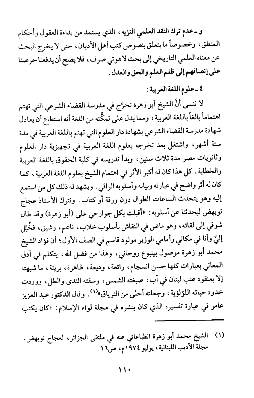 نويهض ليحدثنا عن اسلوبه: "اقبلت بكل جوارحي على (أبو زهرة) وقد طال
