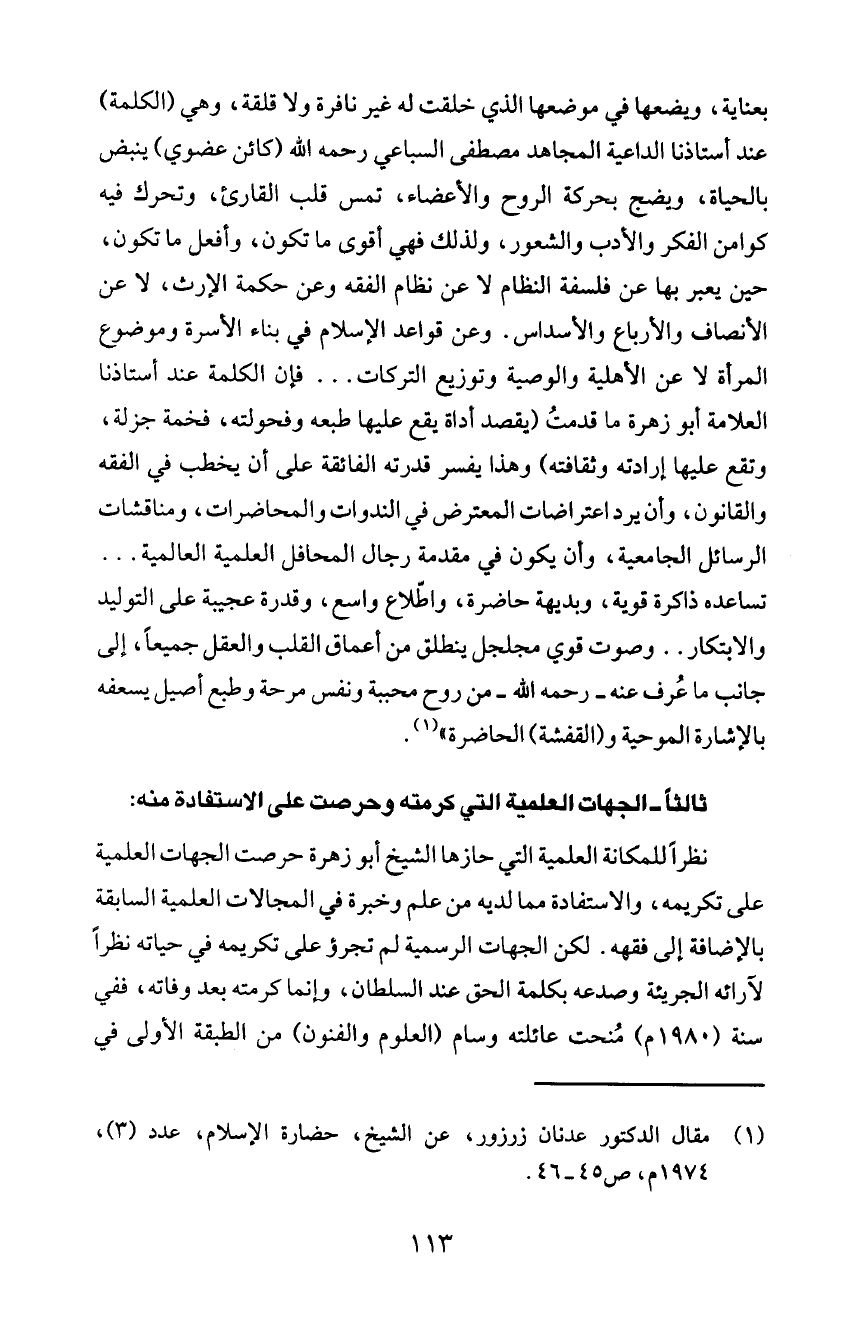 العلامة أبو زهرة ما قدمتُ (يقصد أداة يقع عليها طبعه وفحولته، فخمة جزلة،