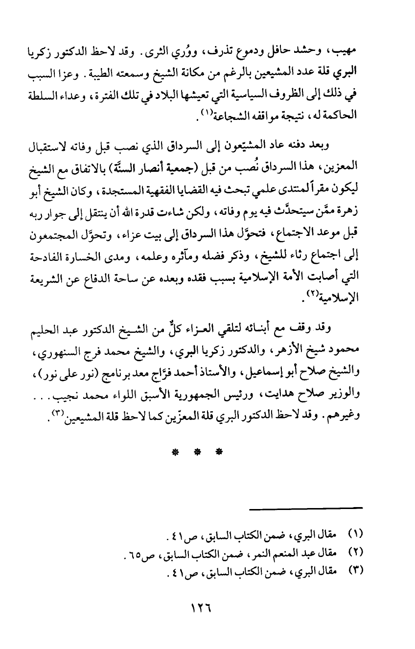 محمود شيخ الأزهر، والدكتور زكريا البري، والشيخ محمد فرج السنهوري،