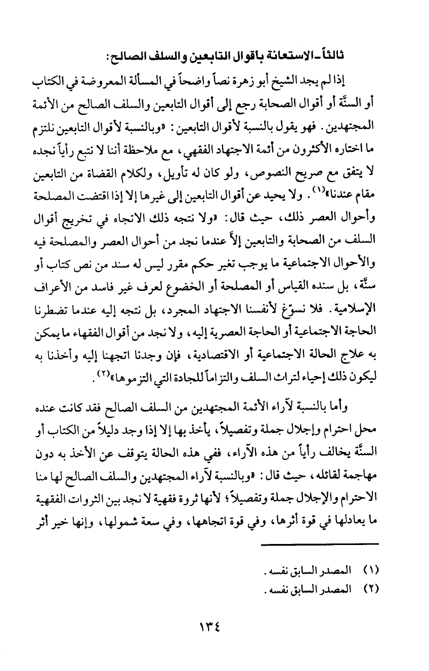 السلف من الصحابة والتابعين إلأَ عندما نجد من أحوال العصر والمصلحة فيه
