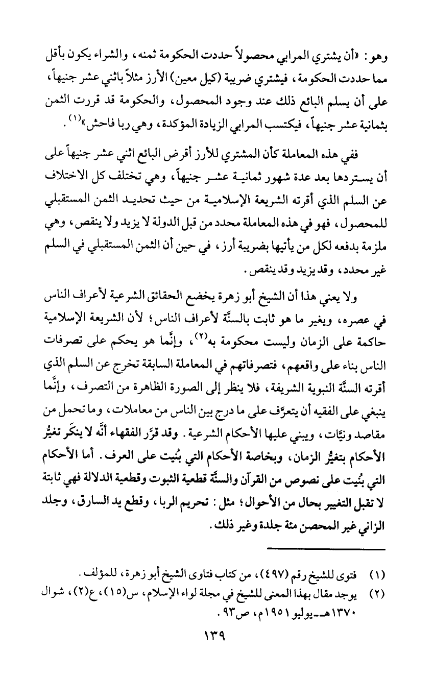 الأحكام بتغئر الزمان، وبخاصة الأحكام التي بنُيت على العرف. أما الأحكام