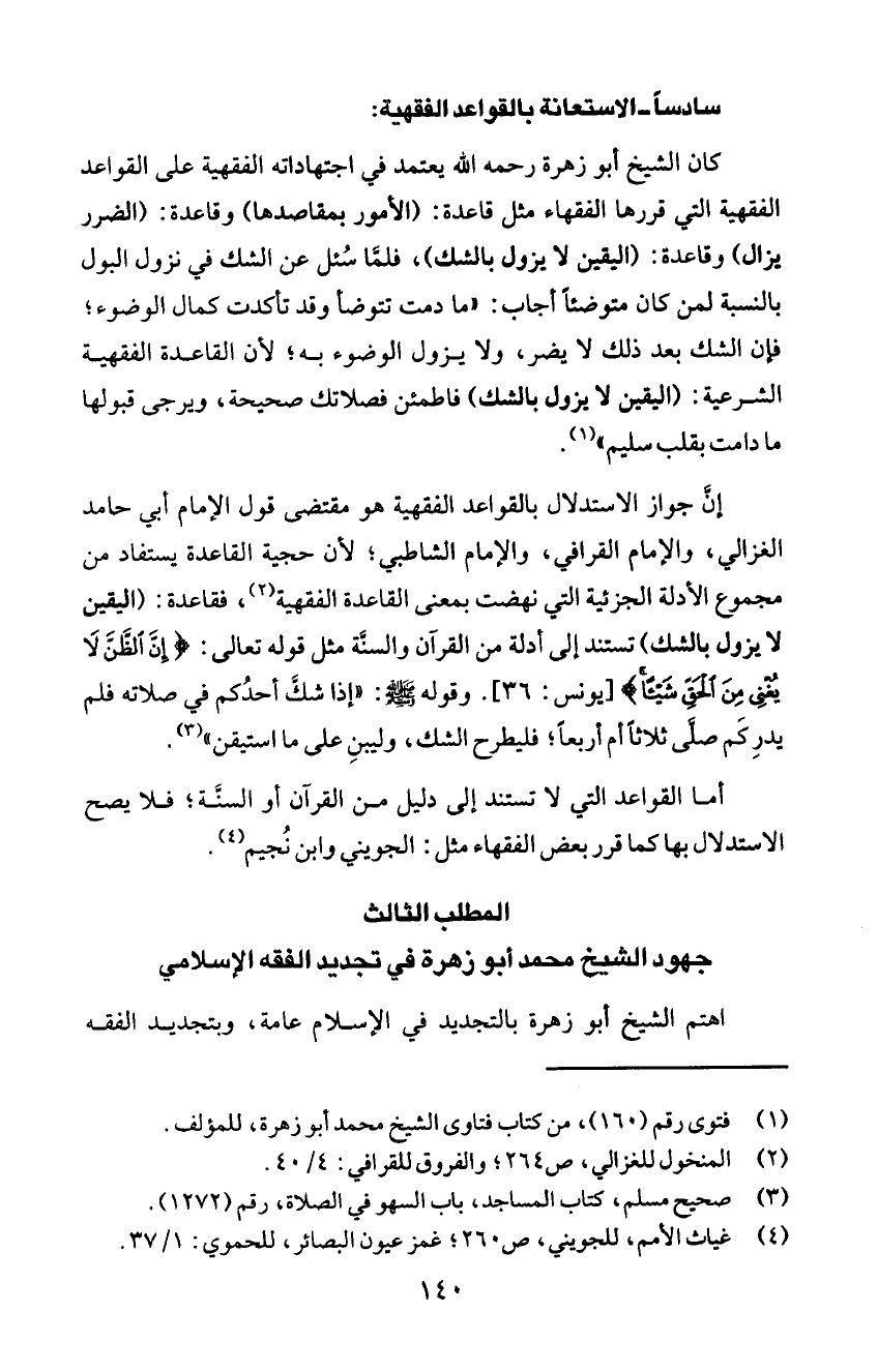 كان الشيخ أبو زهرة رحمه الله يعتمد في اجتهاداته الفقهية على القواعد