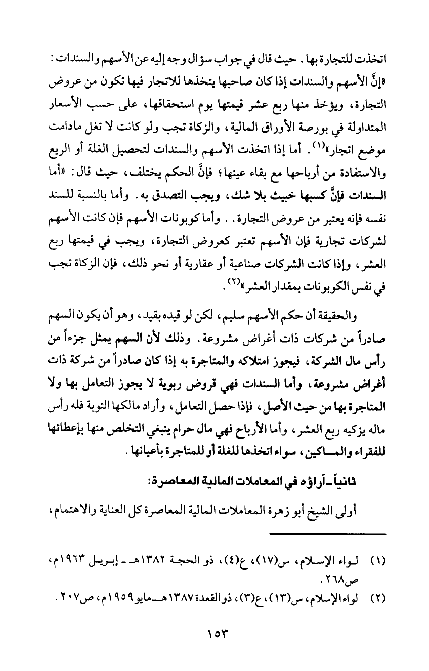 اتخذت للتجارة بها. حيث قال في جواب سؤال وجه إ ليه عن ا لأسهم وا لسند ات: