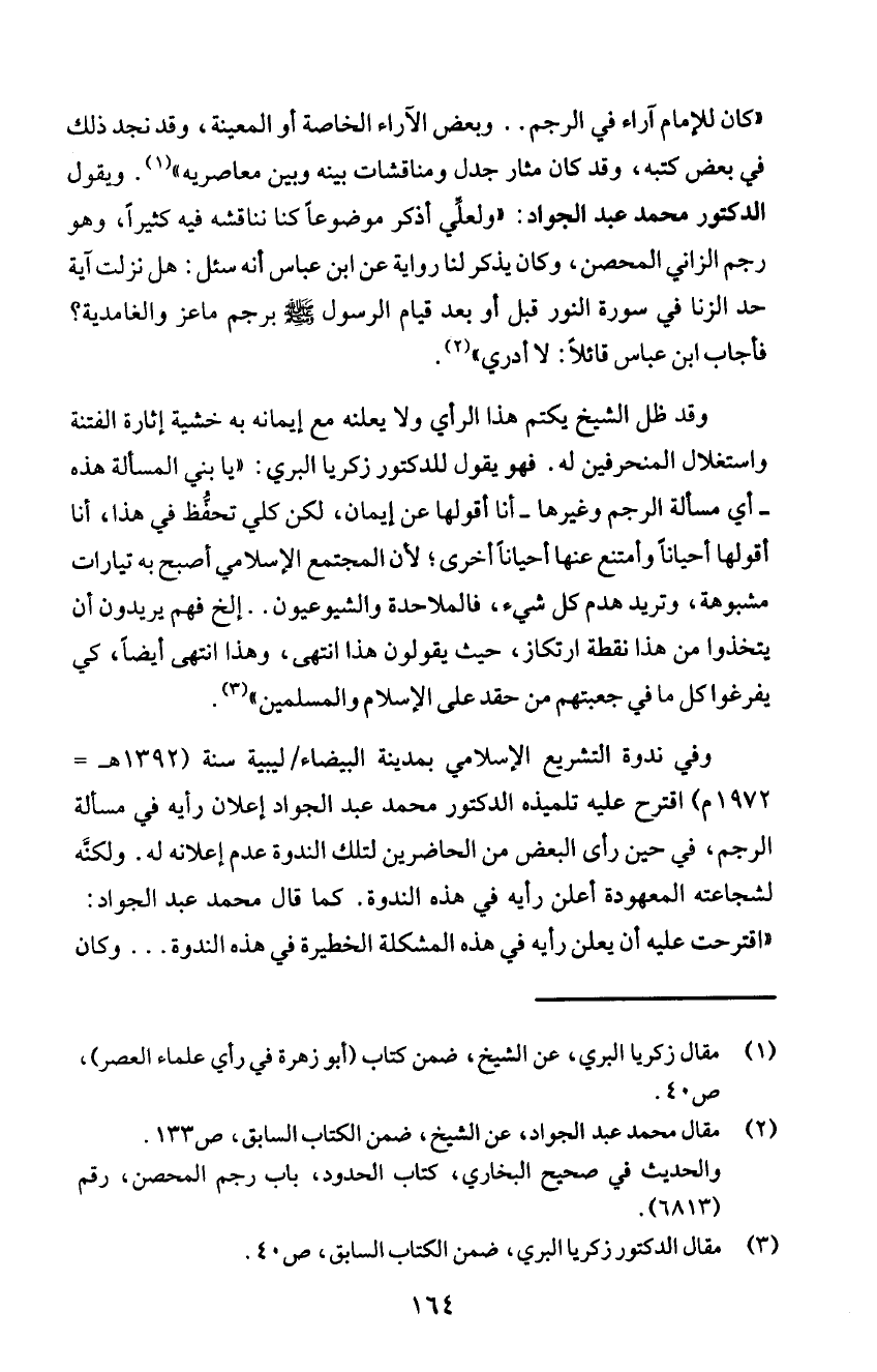 الرجم، في حين راى البعض من الحاضرين لتلك الندوة عدم إعلانه له. ولكته