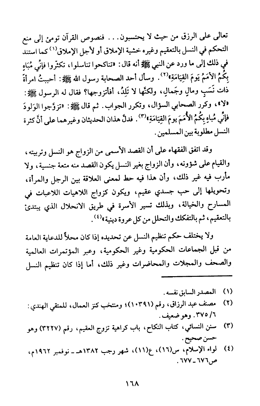 في ذلك إلى ما ورد عن النبي ع! انه قال: "تناكحوا تناسلوا، تكثروا فإئي مُبَا5