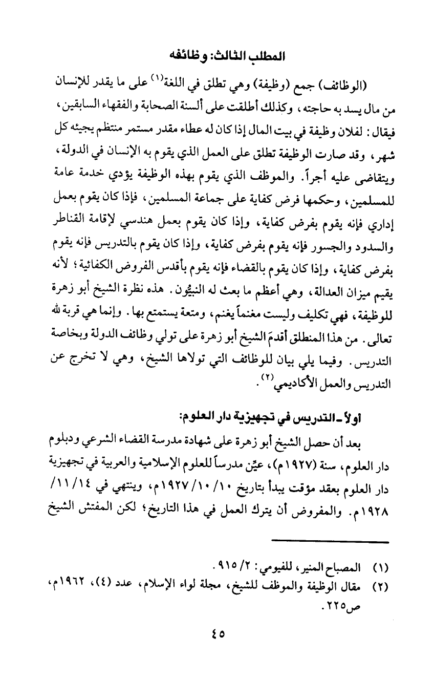تعالى. من هذا المنطلق أقدمَ الشيخ أبو زهرة على تولي وظائف الدولة وبخاصة