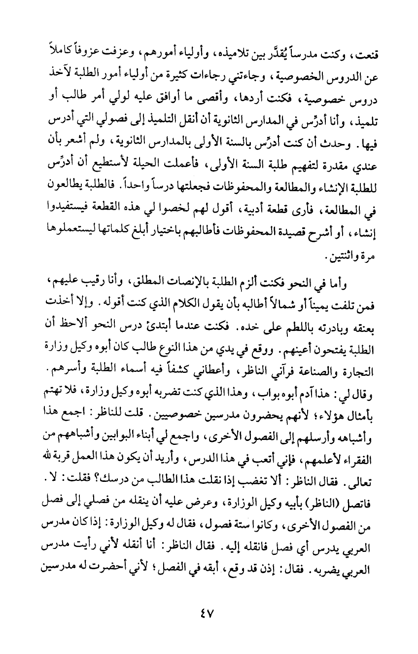 العربي يدرس أي فصل فانقله إليه. فقال الناظر: أنا انقله لأني رأيت مدرس