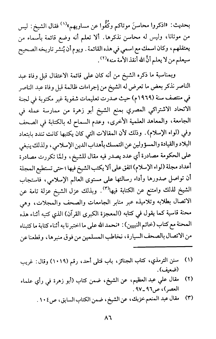 الناصر نذكر بعض ما تعرض له الشيخ من إجراءات ظالمة قبل وفاة عبد الناصر