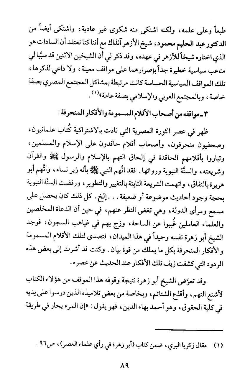 (1) مقال زكريا البري، ضمن كتاب (أبو زهرة في راي علماء العصر)، ص 96.