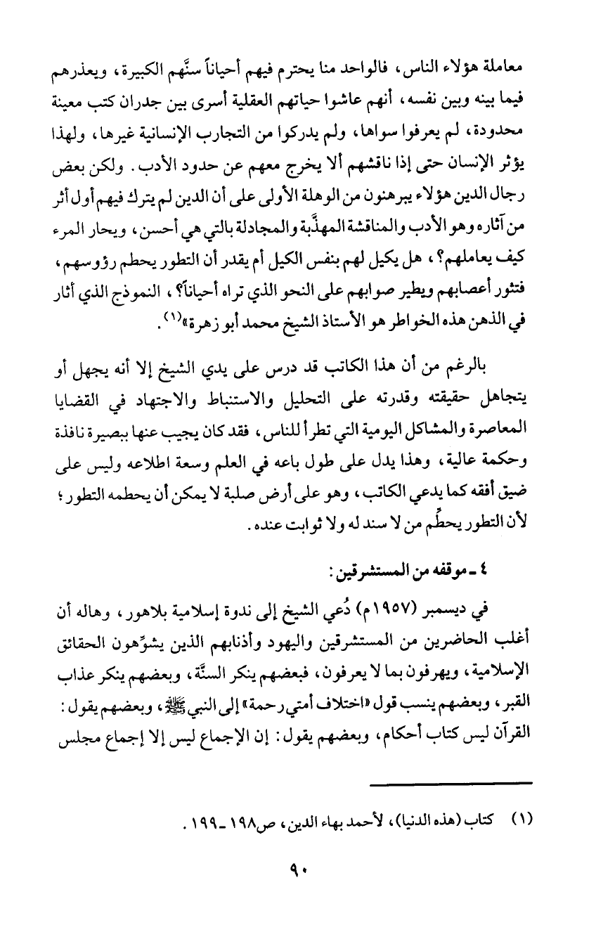 في الذهن هذه الخواطر هو الأستاذ الشيخ محمد أبو زهرة " (1).