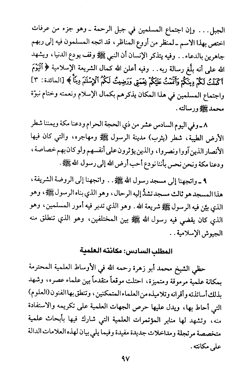 الله على أنه بلَغ رسالة ربه. . وفيه أعلن الله كمال الشريعة الإسلامية " اَتؤمَ