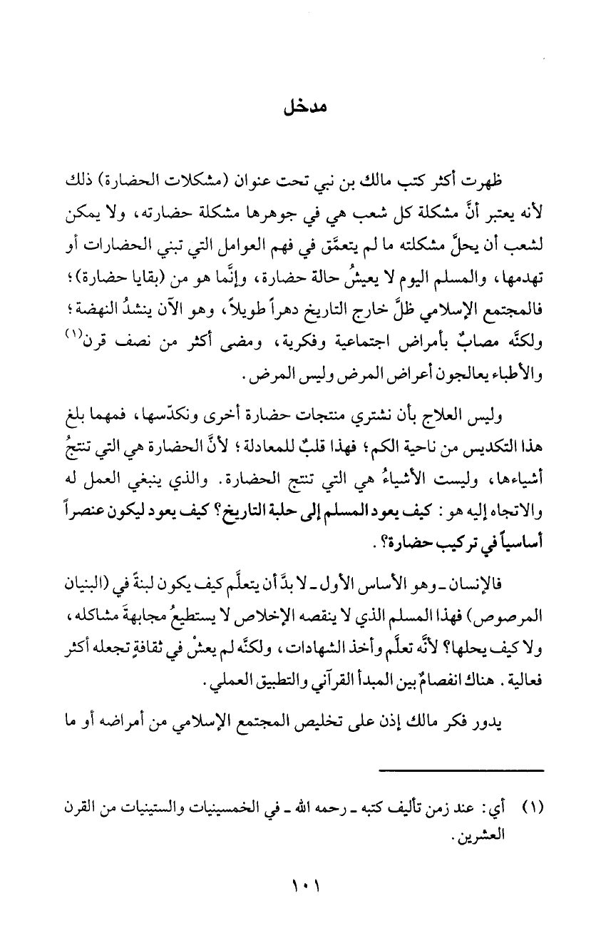 والاتجاه إ ليه هو: كيف يعود المسلم إلى حلبة التاريخ؟ كيف يعود ليكون عنصراً