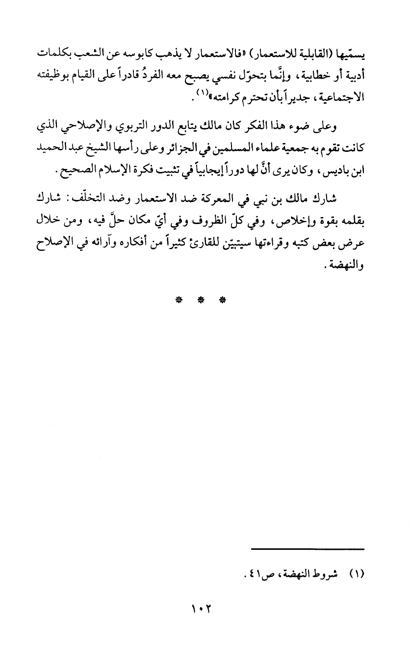 شارك مالك بن نبي في المعركة ضد الاستعمار وضد التخلّف: شارك