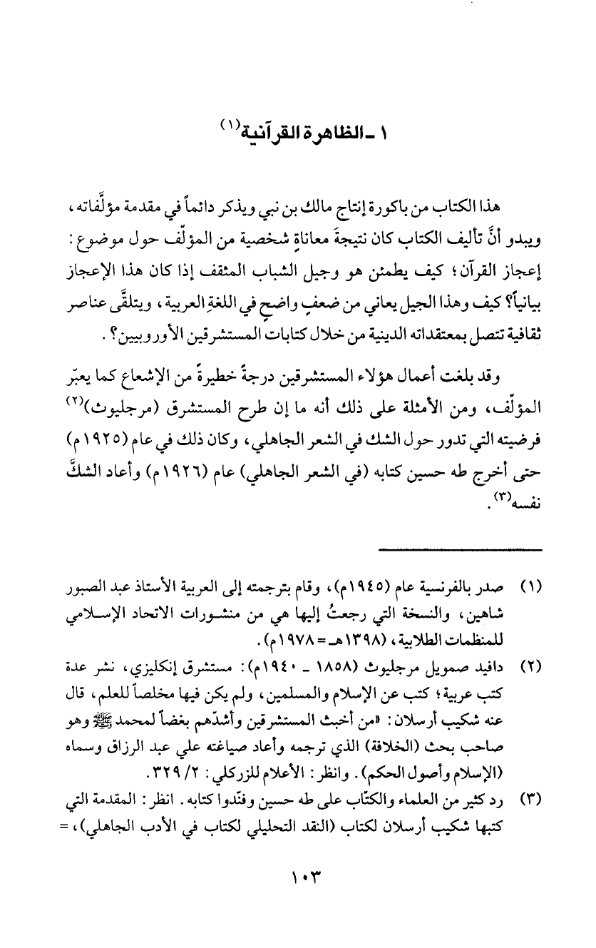 المؤلف، ومن الأمثلة على ذلك أنه ما إن طرح المستشرق (مرجليوث) (2)